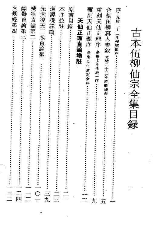 《古本伍柳仙宗全集》是一部重要的道教内丹术著作,为明伍守阳《天仙正理直论》《仙佛合宗》与清柳华阳《金仙证论》《慧命经》之合刊。《伍柳仙宗》所述丹法纯粹为清静修炼,说理浅近,指点显明,将前人的经验整理提高,且尽量少用比喻隐语,对内丹术的术语、功法步骤等作了全面系统的论述,是内丹术发展到成熟时期的代表作品。