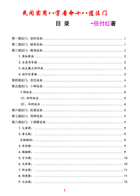 十八道法门盲派八字 2025-12-31 命理学 资源下载下载价格5 金币VIP免费升级VIP立即购买购买说明:网站资源均使用百度网盘,如遇链接失效,请添加管理员微信补发,管理员微信:a18973288884 文件大小:2M,页数:55页 盲派秘传实战技法体系,以口诀化断命为核心,含排盘、干支作用、六亲定位等 18 类实操法门,重象法与做功,弱化旺衰用神,历代口传手抄,强调快速铁口直断,聚焦父母生肖、兄弟排行、配偶特征等关键节点。 本站为非营利公益网站,资源均来源于用户上传和网络,如有侵权,请联系客服微信:a18973288884,站长会及时处理,以保护你的权利。