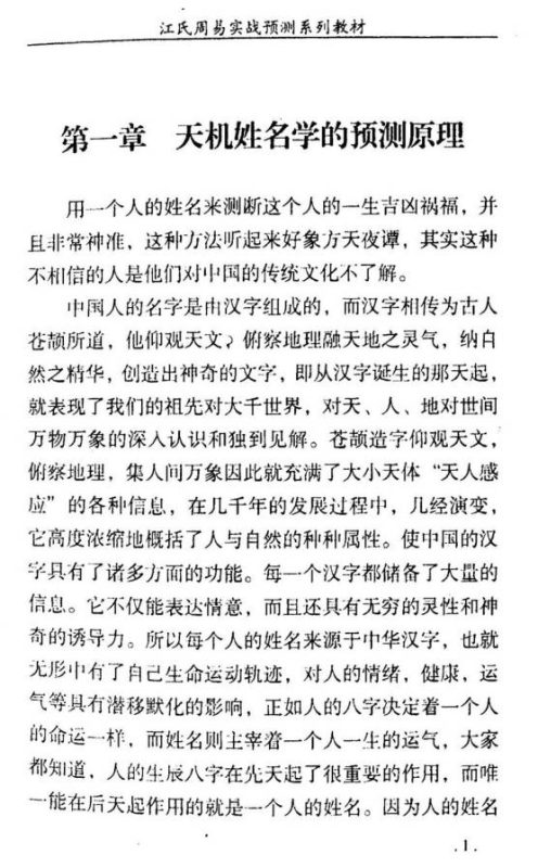《天机姓名预测学函授教材》由江远明整理编著,源自山东滕州刘卫大师的姓名预测绝学,是一本革新传统姓名学、侧重实战应用的易学函授教材。阐释姓名预测原理、太极点确立与意义、汉字偏旁部首结构、五行定位、八卦万物类象等。讲解五行生克耗泄应用、姓名推断步骤、断性格、外貌、祖上贫富等秘法,以及阴阳宅风水判断。含《数字神断》简介,助力提升预测能力,还有江远明实战经验与创新绝招。