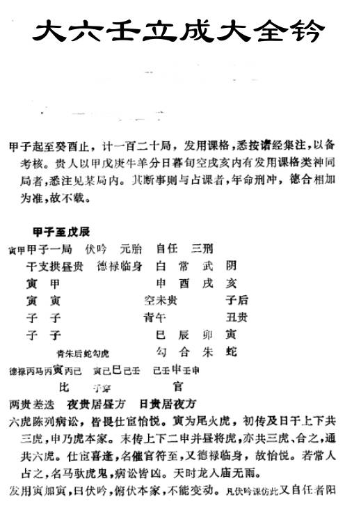 大六壬立成大全钤 9小时前 六壬 资源下载下载价格5 金币VIP免费升级VIP立即购买购买说明:网站资源均使用百度网盘,如遇链接失效,请添加管理员微信补发,管理员微信:a18973288884 文件大小:8M,页数:393页 全书以六十甲子配十二时辰,系统编排七百二十课,逐局标注课体、发用、神将格局与旬空、贵人旦暮等关键信息。其以 “立成” 为体例,少载繁断,重在定型课格、汇注诸经成说,便于快速检索与核对课局,是六壬占验的重要工具书,适合进阶研习者夯实课式基础与规范起课流程。 本站为非营利公益网站,资源均来源于用户上传和网络,如有侵权,请联系客服微信:a18973288884,站长会及时处理,以保护你的权利。