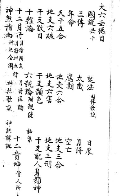 全书以天地盘、四课三传为根基,系统梳理起课法则、神将关系、神煞应用及六亲类象,覆盖官禄、求财、婚姻、疾病、出行等实用占断。重点收录年命、空亡、五合六冲、神煞指南、地支类神等核心篇章,结构严谨,条理分明。 其特色在于 “会通” 与 “实用” 并重,博采众长而去繁就简,适合进阶研习与实战查考,是研究清代六壬民间传承与整理脉络的珍稀文献。