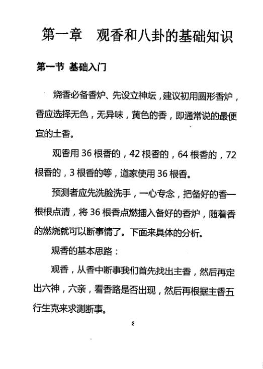 观香断事秘法 2周前 民间传承 资源下载下载价格5 金币VIP免费升级VIP立即购买 文件大小:2M,页数:126页 观香断事属于民间民俗占卜中的一种说法, 多是民间传承中总结的对香火燃烧状态的解读规则,不同地域、流派的方法存在差异。民间常选黄色一尺二长的草香、柏壳香等,不选高级香或彩色香。点香需让香根分开不粘连,火苗上窜为吉,忌扇风或吹火;若点不着、冒黑烟则被视作凶兆,暗示所求之事不顺。插香要平整直立,火头保持时间越长越吉祥。