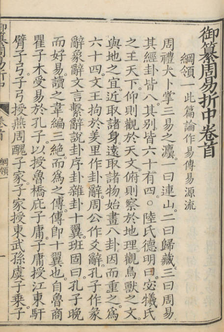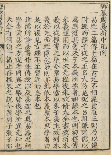 康熙五十二年,康熙帝敕令李光地编纂此书,实际上参与纂修者除李光地外,还有胡煦、何焯、李鼎征等十一人,康熙本人也亲自参与了卷首凡例、《启蒙附论》《序卦明义》《杂卦明义》的编纂。全书共二十二卷,卷首一卷。卷首包括纲领、义例等内容,正文则按《周易》上经、下经以及《彖传》《象传》《系辞传》《文言传》《说卦传》《序卦传》《杂卦传》等顺序编排,此外还收录了《启蒙》上下及《启蒙附论》《序卦》《杂卦》明义等内容。作为清王朝官方纂修的《易》学著作,《御纂周易折中》自问世后,即作为士子读《易》的钦定教科书颁赐各级学校,成为清朝官方指定的科举考试易学教科书,流传颇广,对后世易学研究产生了重要影响。