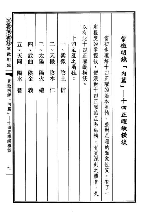 紫微明镜 3周前 紫微斗数 资源下载下载价格5 金币VIP免费升级VIP立即购买购买说明:网站资源均使用百度网盘,如遇链接失效,请添加管理员微信补发,管理员微信:a18973288884 文件大小:16M,页数:2册 《紫微明镜》是香港紫微斗数名家陈雪涛的核心著作,分外篇与内篇(上下册),以 “星系逻辑” 为核心,是系统解析星情、夯实斗数断盘能力的进阶典籍,常与《紫微斗数阐微录》等配套研读,适合有基础的学习者与从业者。 本站为非营利公益网站,资源均来源于用户上传和网络,如有侵权,请联系客服微信:a18973288884,站长会及时处理,以保护你的权利。