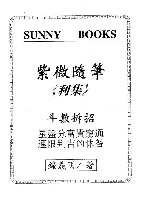 钟义明所著《紫微随笔》是紫微斗数领域兼具学术考据深度与实战应用价值的经典系列,既澄清传统讹谬、重构斗数体系,又融合《易经》《河洛理数》《子平命理》等多术数精髓,是从理论筑基到实战落地的核心参考资料,被业内视为打通斗数 “理法” 与 “技法” 的关键著作。