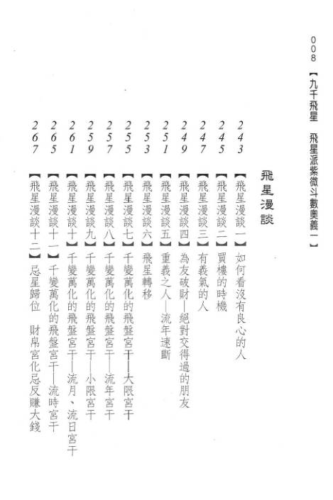 《九千飞星》(又名《九千飞星 —— 飞星派紫微斗数奥义》/《飞星漫谈》)是九千(命理研究者常用笔名)所著的飞星紫微斗数经典实战读物,是飞星派学习者公认的入门与进阶并重的参考书。逻辑清晰、案例丰富、语言直白,少用晦涩古文;强调 “体用结合、飞化有象”,反对迷信断语;对各派差异持客观态度,不强行贬低其他流派。